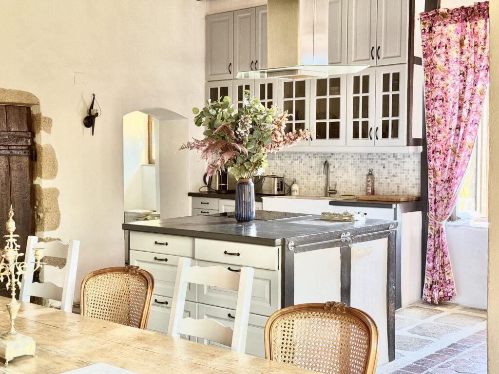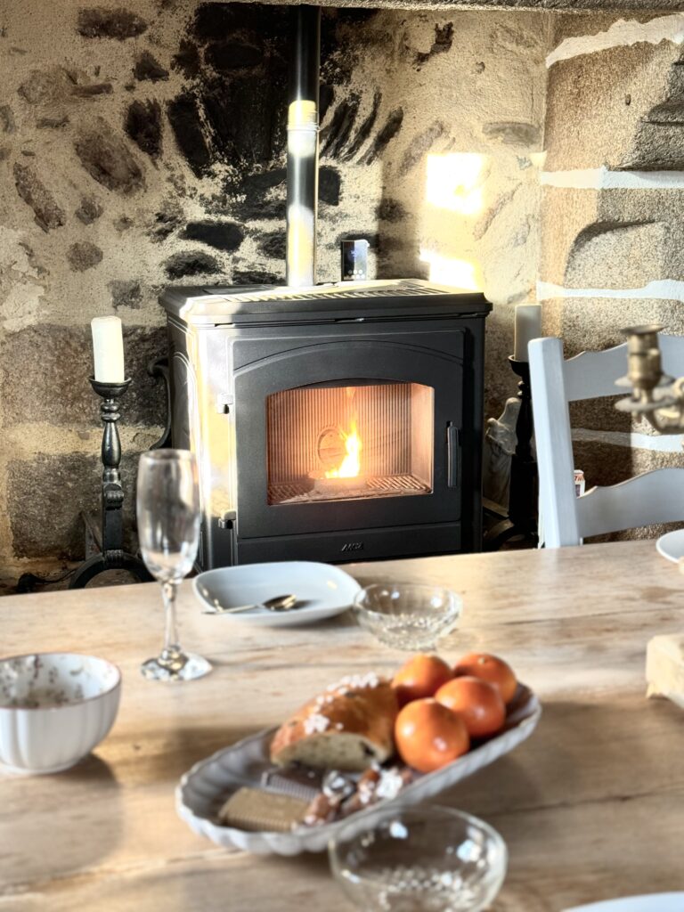 Au rez-de-chaussée, une cuisine conviviale et entièrement équipée (four, plaques, lave-vaisselle, machine Nespresso Classique, bouilloire, grille-pain, micro-onde, réfrigérateur et congélateur) s’ouvre sur une grande salle à manger propice aux repas partagés. Le salon, avec ses poutres apparentes, sa cheminée à granulés et sa bibliothèque, invite à des soirées douces et chaleureuses.
